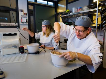 In de keuken maken cliënten producten zoals cake, appeltaart en koekjes. Maar ook nasi, pilav, soepen, hartige taarten, jam en mosterd. Deze kwaliteitsproducten worden verkocht in de winkel van het activiteitencentrum. Het leren van verschillende bereidingstechnieken staat centraal.