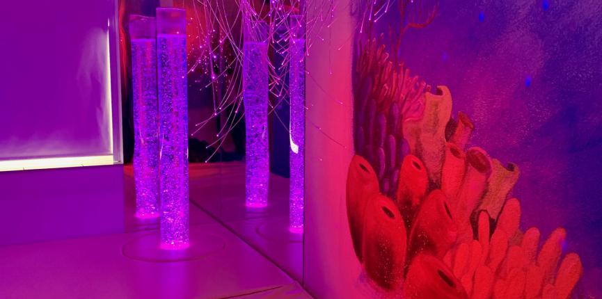 Rebecca: "We merken dat snoezelen goed werkt om gedrag gunstig te beïnvloeden. Preventief, om het gedrag als gevolg van teveel prikkels te beïnvloeden. Maar onze bewoners gaan ook lekker op het waterbed liggen om te relaxen of gewoon omdat snoezelen een fijne activiteit is."