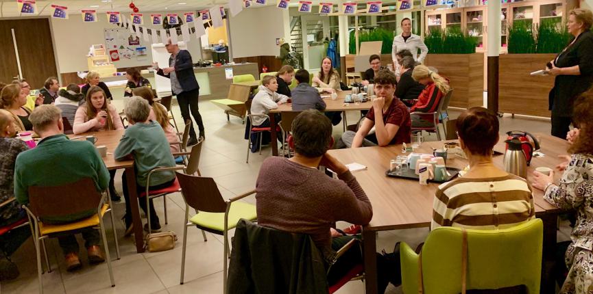 Een zaal vol nieuwsgierige en leergierige cliënten en begeleiders ging aan de slag met de SlimOnline doebox.